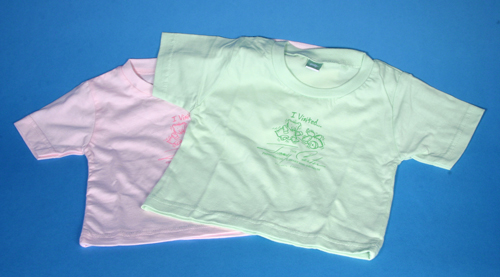 This Infant Tee shirt sports the Jimmy Carter Library Signature Logo and Teddy and Duckie playing. Made from 100% cotton to provide comfort for your infant. (Available in colors pink and green.)